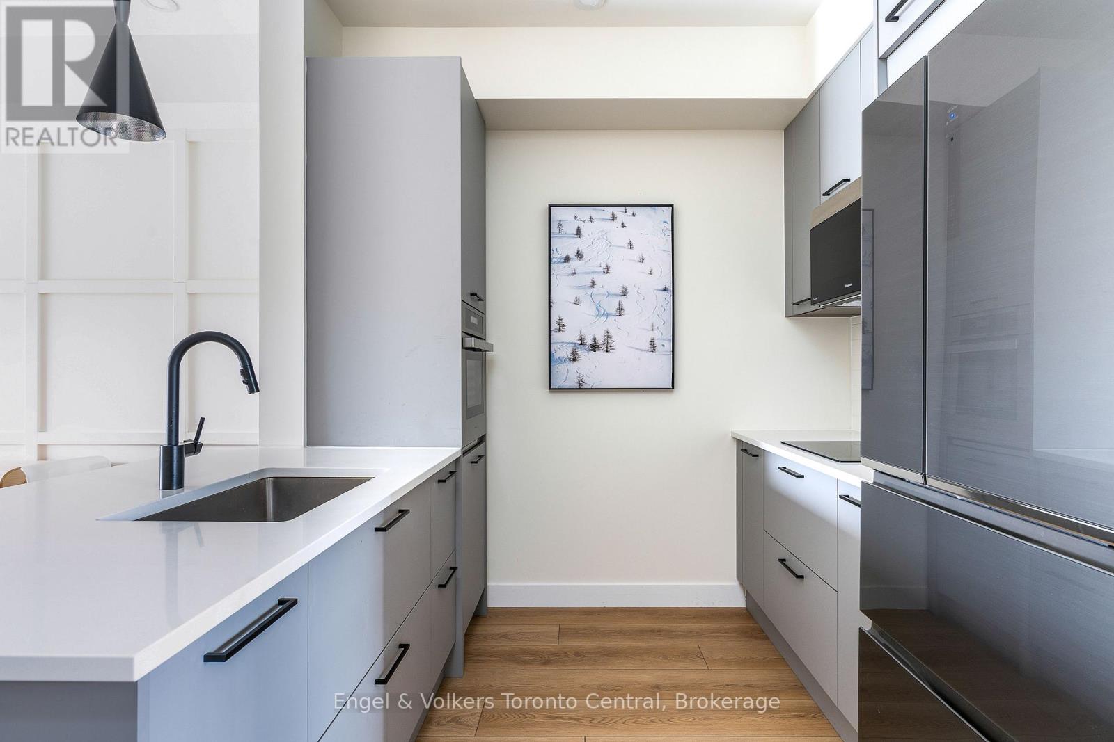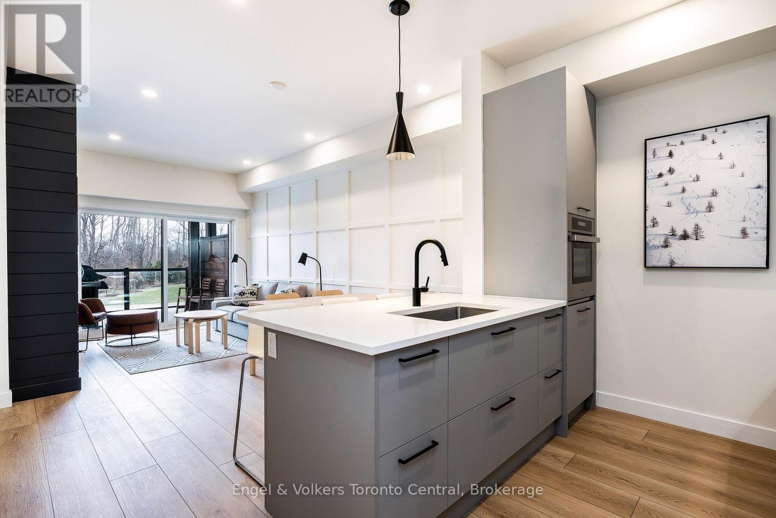 SUMMER RENTAL (spring/summer lease April 1st to September 30th - $2,650/month plus utilities. July & August available for $3,500/month plus utilities) Beautiful fully furnished two-bedroom two-bathroom ground floor condominium located in Mountain House, just a 20 minute walk to the Blue Mountain Village. No need to walk up stairs. Enjoy the peace and quiet of this property backing onto Windfall's Nature Preserve with pristine walking trails. Mountain House has a state-of-the art outdoor hot and cold pool facility with sauna, workout room and common kitchen with dining room called The Zephyr Spa. Unique to this unit is the shiplap accents in the bedrooms and the fireplace. Wood accent on the dining/ living wall. Bathrooms have custom tile, in-floor heating and shower doors, extra wide oak flooring throughout, quartz counter tops. Fully equipped kitchen has new appliances tableware, and BBQ. Dining table expands to 8 with folding chairs included. Samsung Frame TV. Utilities extra. No pets will be considered. (42034879)