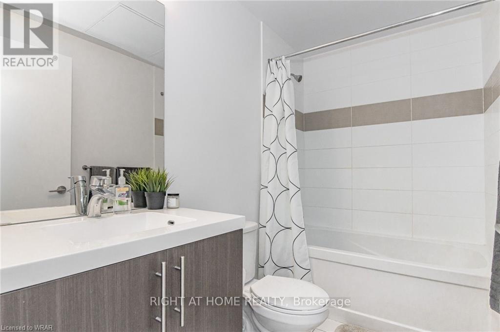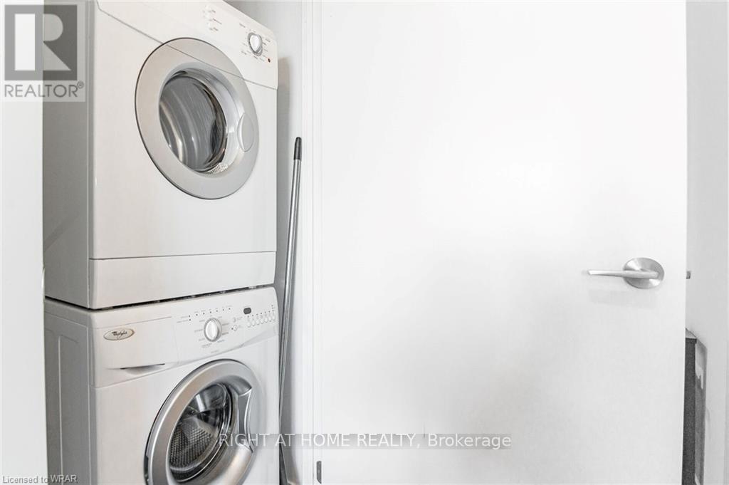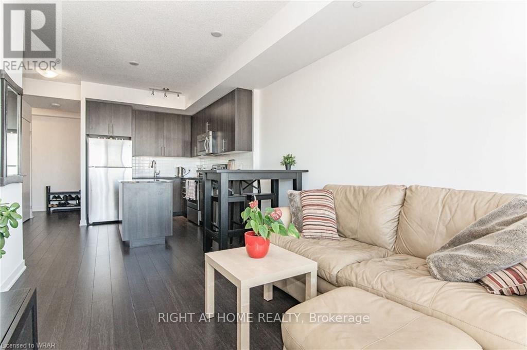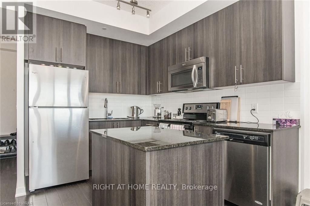 Welcome to this stunning, modern One Bedroom Plus Den In Downtown Kitchener. Elegant hardwood flooring and beautiful floor to ceilings windows. The living room is a versatile space, with walkout to your private balcony with excellent view. The den can be used as an office area or bedroom. Open to the living room is your kitchen, with stainless steel appliances, granite finishes and a spacious island. This condo has beautiful 9 foot ceilings and provides in-suite laundry. UnitComes With One Parking and One Locker. Steps public transit, LRT, Shops, Library, Victoria Park.Close To Go Stations And Tech Community (42256174)
