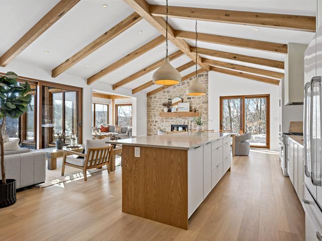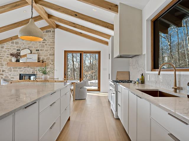 New construction on a private 3.87-acre lot in Lac-Tremblant-Nord. This 2,397 sq. ft. home fully furnished, features 4 bedrooms, 2 bathrooms, a powder room, and a 672 sq. ft. garage. Heated saltwater inground pool with a 1,200 sq. ft. terrace. Access to Nez-de-l'Indien hiking trails and Lac-Tremblant-Nord marina. Minutes from Tremblant's Old Village and Mont-Tremblant Resort. A serene retreat blending nature, privacy, and modern luxury in one of the Laurentians' most sought-after locations. (55931884)