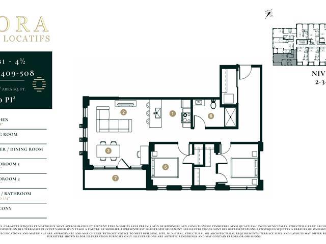 Strategically located near the De la Concorde, Cartier, and Montmorency metro stations, the train station, university campuses, Place Bell, and parks. ORORA offers a lounge, gym, Zen space, panoramic terrace, heated pool, and BBQ. Optimized mobility with indoor parking, electric vehicle charging stations, and bicycle storage. Services ($): concierge, grocery, moving, and interior design. A modern, complete, and upscale living environment. (48026083)