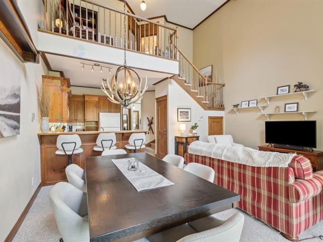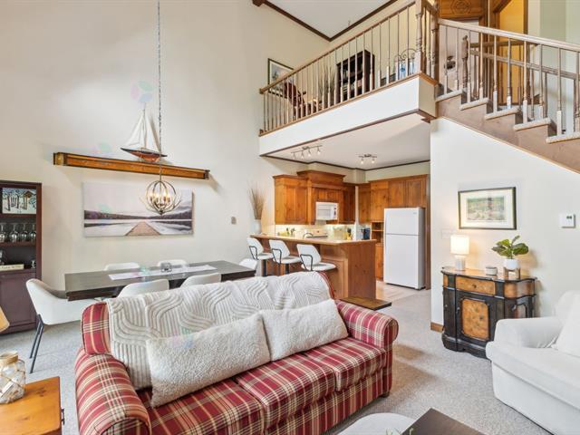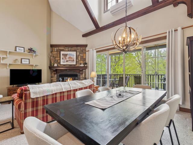 The ideal location for your stay in Tremblant! Located in the prestigious Le Géant Golf Course area, just 1 km from the resort, this beautiful fully furnished and equipped condo offers the perfect setting for an unforgettable vacation. Enjoy a private and intimate balcony, along with 2 bedrooms and 2 bathrooms (1137 sq. ft.) spread over 2 floors. This spacious condo combines comfort and elegance with its little luxuries: cathedral ceilings, wood-burning fireplace, large balcony, and ample visitor parking. On-site amenities: 3 outdoor pools and a spa, playground, multisport trail nearby, free shuttle service. (55069320)