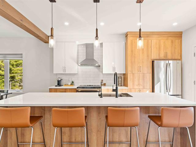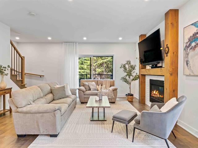 INDIGO - Beautiful 3-bdrm| 2+1bth |1 415 sqft condo on 2 floors! Location: St-Jovite area, peaceful development located 500 m from a bike path (P'tit Train du Nord for biking, running, and cross-country skiing), near Le Maître golf course, in the heart of a pine forest! Life's little luxuries: high-end appliances,gas fireplace, A/C heat pump, 9-foot ceilings, sold furnished and ready to move in, high-quality finishes including quartz kitchen countertops and engineered flooring, reverse osmosis drinking water system and water softener for the entire house, and filtration to remove chlorine, 2 parking spaces, and electric car charger. Must see! (41151959)