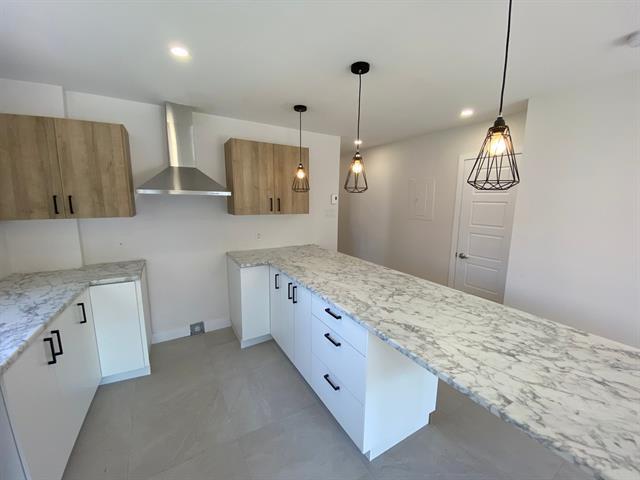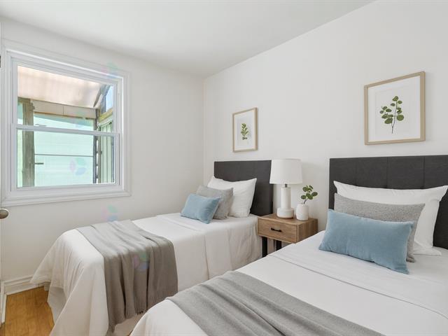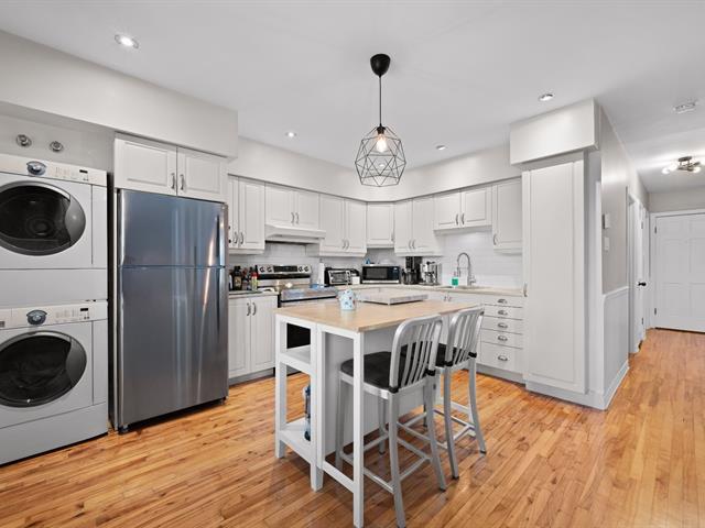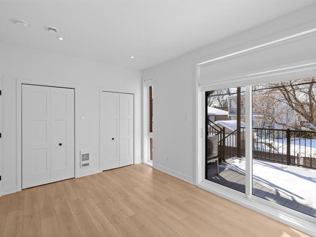 Property Description Two-bedroom unit in a newly built 4plex in Mercier! Timeless materials with modern, light-toned finishes. Wood accents on the kitchen ceiling, countertop and kitchen cabinets, and bathroom vanity. Both bedrooms are a good size and have closets. One bedroom has a "juliet" balcony, while the other opens onto a lovely sunny terrace overlooking the backyard. Bathroom with a combined bath and shower, as well as a stacked washer/dryer area. (56151389)