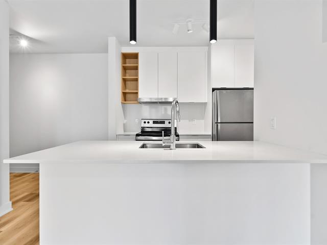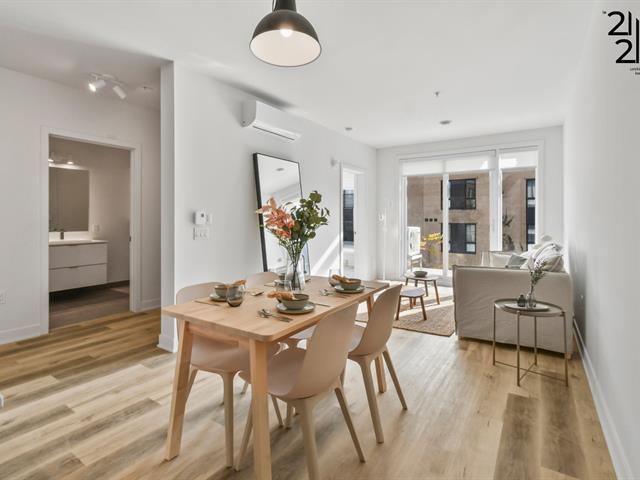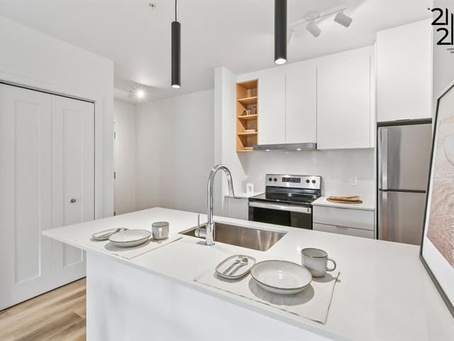 Spacious 2-bedrooms unit in a newly constructed building. Bright open-concept layout featuring high-end finishes and a large private terrace. A rare opportunity. Inclusions: light fixtures, window blinds, wall-mounted heat pump, brand-new appliances (refrigerator, stove, hood fan, dishwasher, washer and dryer), quartz countertops and backsplash, stainless steel fixtures, and soft-close cabinetry. Building includes an elevator with step-free access to all floors. Le 2121 also offers a rooftop terrace, secure storage lockers, and indoor parking. www.le2121.ca (46098253)
