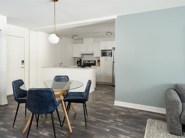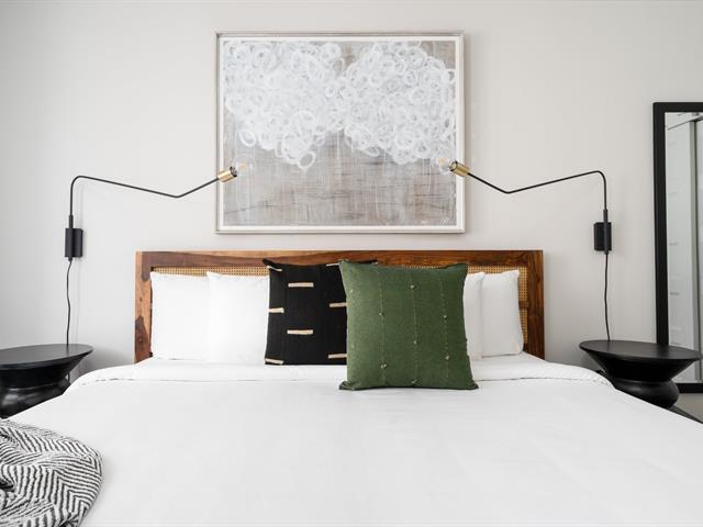 Available July 1st: Modern 4½ condo in Ville-Marie's vibrant Village. Includes 2 large bedrooms, fully equipped kitchen with stainless steel appliances (fridge, oven, dishwasher, hood, microwave), bright living room with AC, in-unit washer/dryer, private balcony, and optional indoor parking. Steps from La Fontaine Park, restaurants, shops, and metro. Elevator, air exchanger, security cameras. Hot water included. Unfurnished. No pets (1 cat allowed). References & credit check required. (40590953)