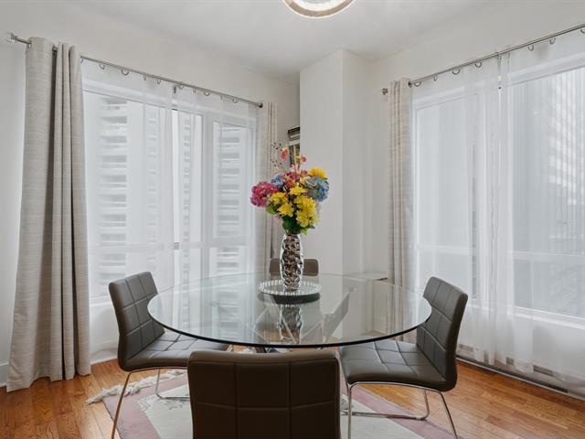 Beautiful fully furnished one-bedroom corner unit located on the 15th floor of Le Concorde building, in the heart of downtown Montreal. Bathed in natural light thanks to its large windows, this property features a warm and functional open-concept living space, with beautiful hardwood floors throughout. The condo is offered turnkey (fully furnished and equipped) with quality furnishings, ideal for quick occupancy. The building offers a fully equipped fitness center, 24/7 security, and access to all amenities within less than a 5-minute walk. (42645740)
