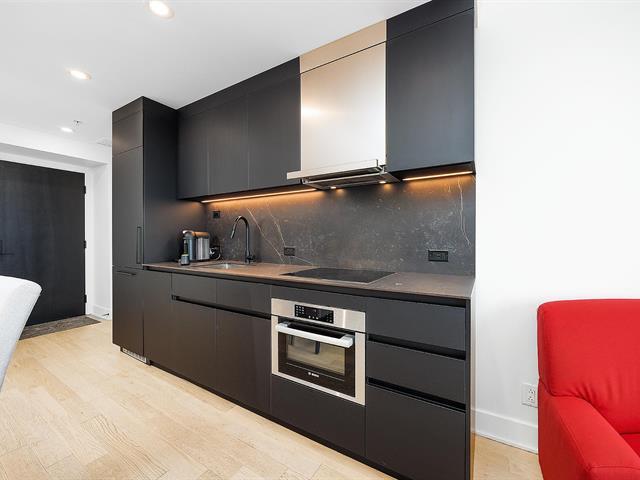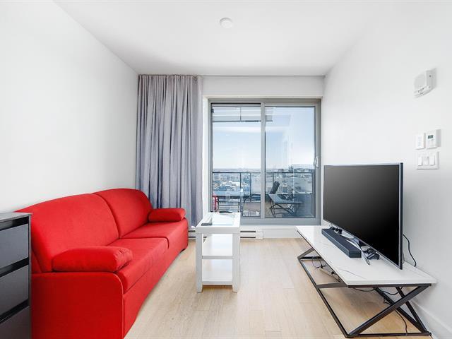 Furnished 1-bedroom condo (3 ½) at Victoria sur le Parc on the 20th floor. Perfect downtown location steps from the river and Square-Victoria metro. Large balcony with spectacular city and water views, day and night. Bright, modern and comfortable unit. Everything within walking distance: restaurants, groceries, cafés and the train station. Luxury building amenities: lounge with kitchen, outdoor terrace with BBQ and summer pool, indoor pool, spa, sauna, gym and 24-hour security. Indoor locker included. A true all-inclusive urban lifestyle. Available now. (50289762)