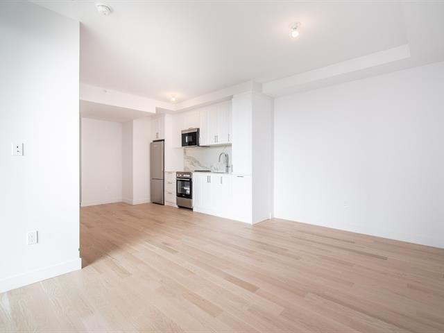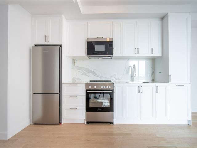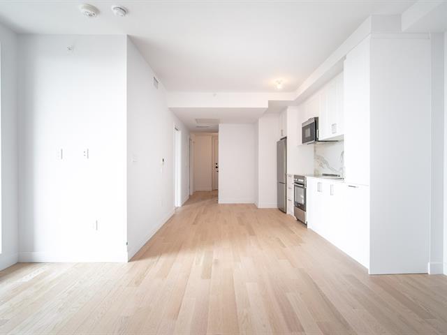 Brand new, sunny condo with one closed (1) bedroom, a spacious bathroom, and a versatile den that can serve as an office or second (2) bedroom. The open-concept living room, kitchen, and dining room offer an airy living space with windows offering a southeast view of Île-des-Soeurs and the St. Lawrence River. The Mille Levert complex features a pool, exercise rooms, and more. Ideally located steps from the island's shopping center, the REM station, and much more--all within walking distance. Available now. (38982088)