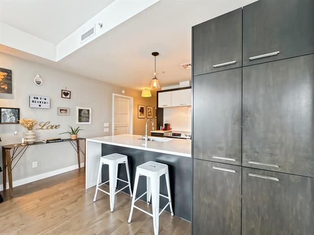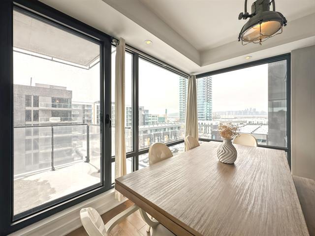Property Description Corner condo offering 2 bedrooms and 2 full bathrooms, filled with natural light and featuring 1,020 sq. ft. of well-designed living space. Located on the 5th floor of the prestigious Evolo 1 building, in the sought-after Pointe-Nord area of Île-des-Soeurs, this unit stands out with its breathtaking panoramic views. The open-concept layout combines modern comfort and elegance and opens onto a large private balcony. Appliances are included, along with one indoor parking space (garage) and an indoor storage unit. (42967600)
