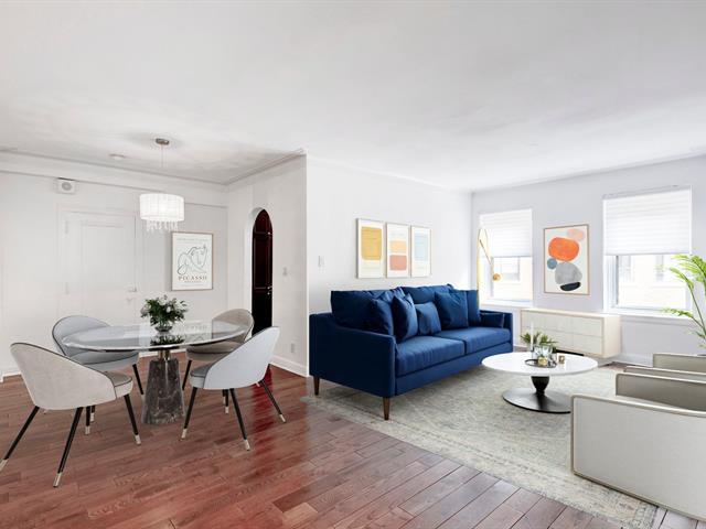 PRESTIGIOUS TRAFALGAR! LOVELY 1 BDRM. 760sf. Renovations 2014: New configuration, Built-in closets, New electrical, Central A/C, new Floor, pocket doors, California shutters, new appliances. SHARED TERRASSE with stunning views- accessible from service staircase. Full service building: Doorman, Valet parking, Large visitor parking, FENCED IN DOG PARK, large common terrasse, live-in concierge, gym. ACROSS STREET FROM TRAFALGAR STAIRS- into Mount-Royal Park! (56314340)