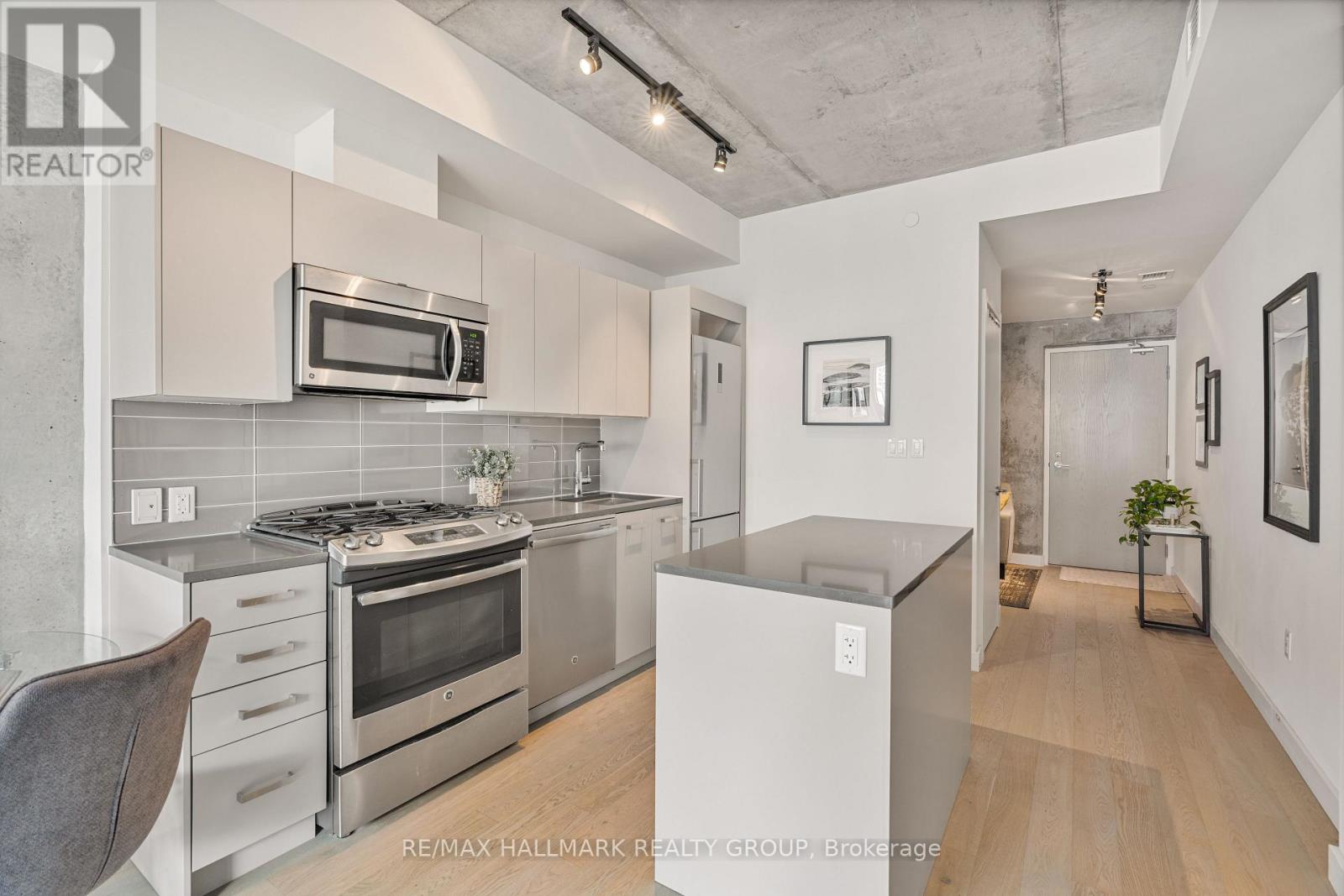 Welcome to The Gotham at 224 Lyon Street a stylish and modern 1+Den suite in the heart of Centretown. This bright and spacious unit features floor-to-ceiling windows, hardwood floors throughout, and a versatile den large enough for a comfortable home office. The sleek kitchen includes full-size stainless steel appliances, a gas stove, and an island perfect for cooking and entertaining. Step outside to a generously sized balcony with a rare gas BBQ hookup, a standout feature not often found in condo living. Additional highlights include ample closet space, in-unit laundry, and a private storage locker. The building offers amenities like concierge service, a party room with kitchen, outdoor BBQ terrace, and bike storage. Just a 5-minute walk to Lyon LRT station, you'll have quick access to downtown, Parliament Hill, and the city's top shops and restaurants. With a near-perfect Walk Score, this home offers the ideal balance of comfort, style, and convenience. Parking & Locker included. (42285261)