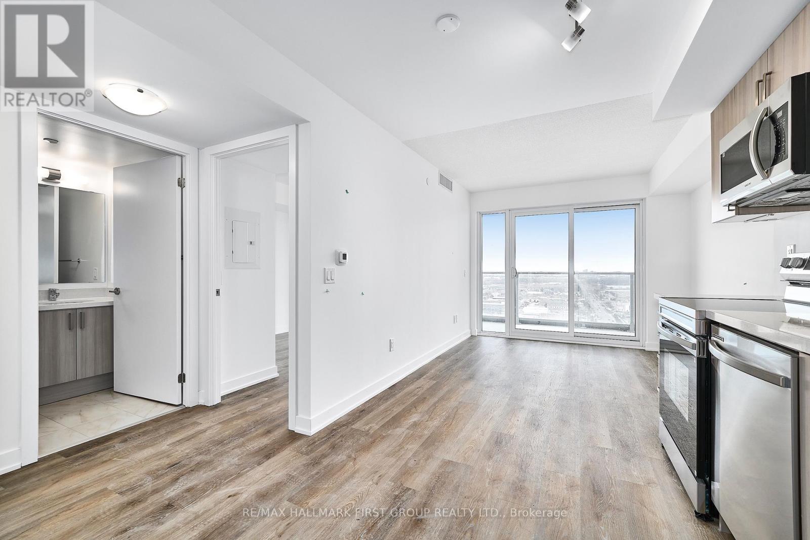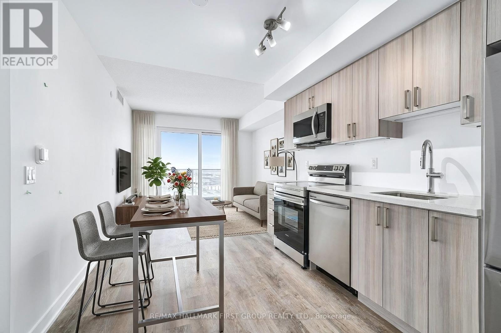 Step into modern living with this brand new, never-lived-in 1-bedroom, 1-bathroom condo in Pickering's newest condominium building. Designed with a sleek, carpet-free interior, the unit features durable vinyl flooring throughout and a bright, open-concept layout that maximizes both space and natural light. The contemporary kitchen is beautifully finished with quartz countertops, stainless steel appliances, and elegant under-cabinet lighting-perfect for everyday living and entertaining alike. Situated on a high floor, the unit boasts unobstructed east-facing views with additional south views toward Lake Ontario. The spacious bedroom features floor-to-ceiling windows that flood the space with natural light and showcase the beautiful eastern exposure. Residents enjoy access to exceptional building amenities including a fully equipped gym, pet spa, three outdoor patios, an outdoor pool with rooftop terrace, and two party rooms-perfect for entertaining or relaxing. Ideally located just steps from Pickering GO Station and Pickering Town Centre, with the Pickering waterfront and Frenchman's Bay only a short drive or a 15-minute walk away. This is a fantastic opportunity to enjoy brand-new condo living in a vibrant and convenient community. (42312364)