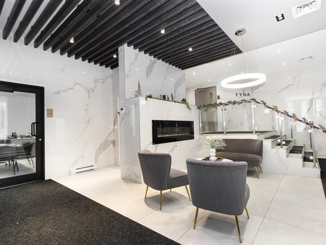 Spacious and bright 963 sq. ft. apartment offering 2 bedrooms and 2 bathrooms on the 9th floor. INCLUDES: Hot Water, High Speed Internet, Light Fixtures, Window Coverings, Electric Fireplace, Stove, Fridge, Dishwasher, Microwave Hood, Washer/Dryer Discover FYNA - 285 boul. Hymus, a luxurious rental building offering amenities such as an indoor pool, fully equipped gymnasium, rooftop terrace and study space (50811154)