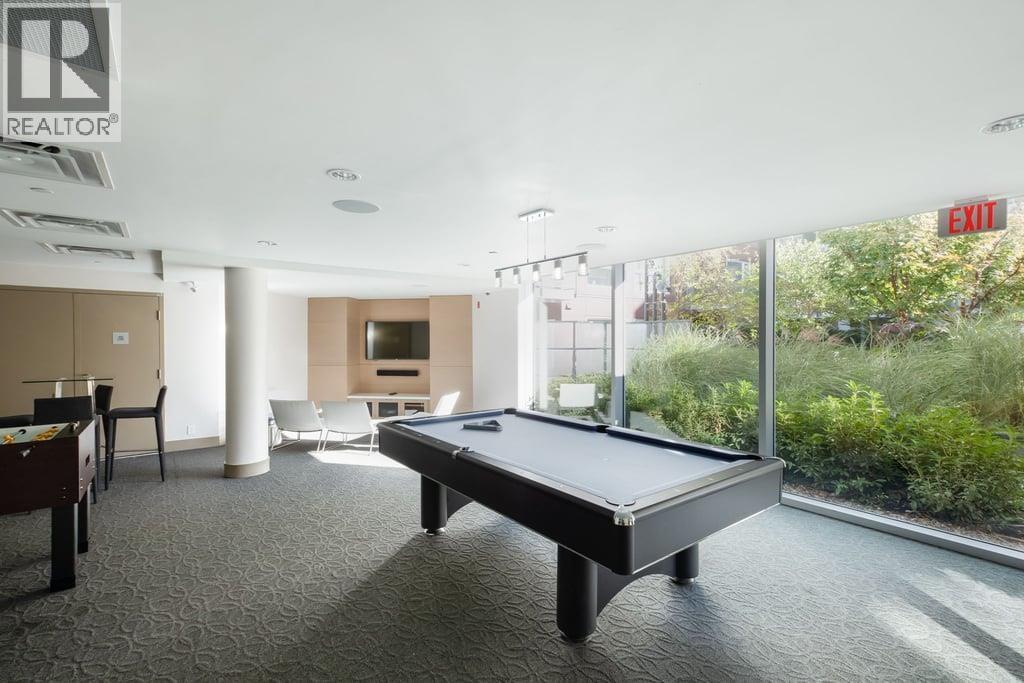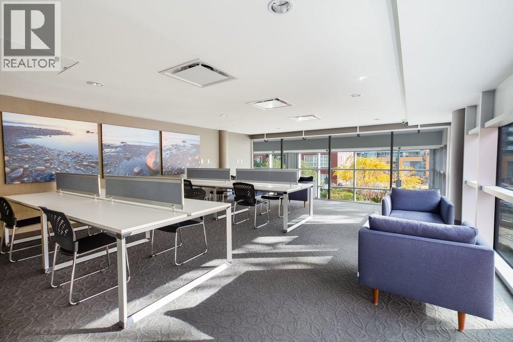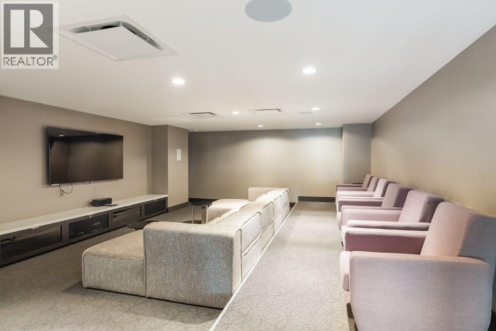This is a spacious 663sf 1 bedroomm 1 bathroom unit with a huge covered balcony, heating and cooling (system only), high ceilings and lots of natural sunlight from three large windows. The open living-dining area is bright, has two sets of glass sliding doors to access the balcony, and a ceiling light over the dining area. The gourmet kitchen features 3 sides of two-toned cabinets, long serving island with breakfast bar, engineered stone countertops, plenty of pot lights and stainless steel appliances. The bedroom has a wall-width closet, a large window, and blackout curtains. The 4 pcs bathroom comes with large format floor tiles and tub surround, a built-in medicine cabinet, stone countertop over the vanity. Rent includes 1 parking stall and 1 storage locker. (32540912)