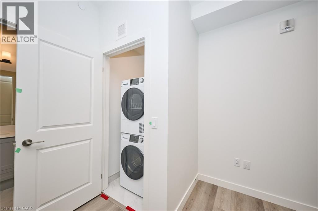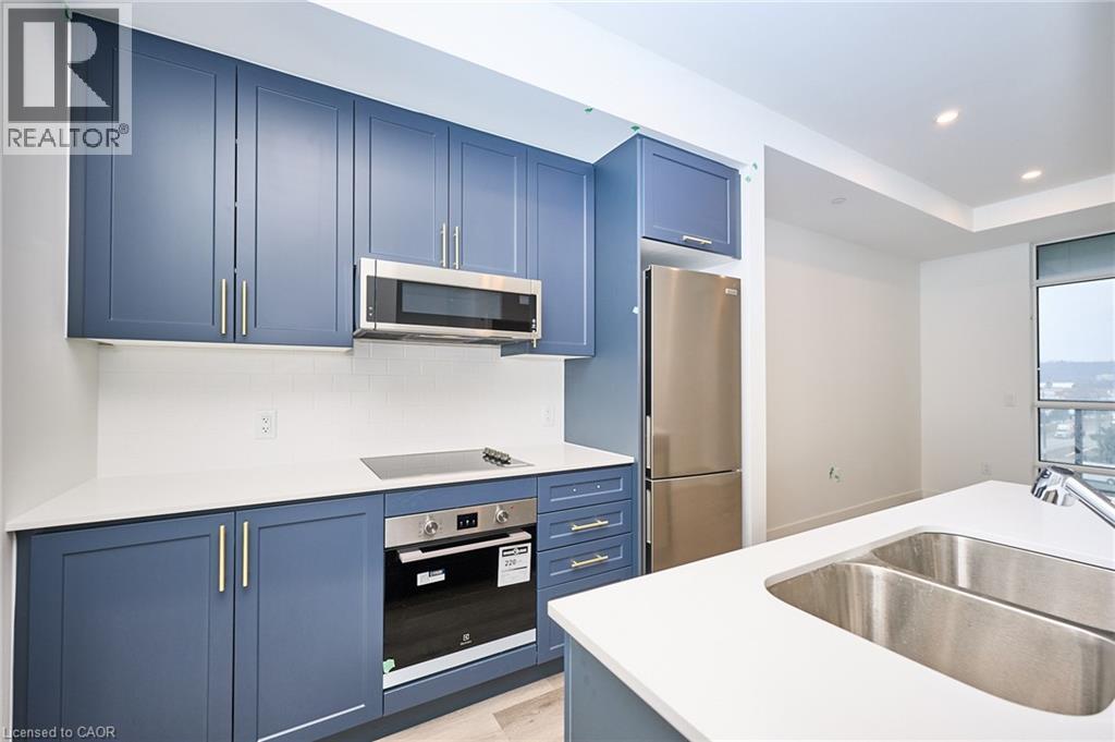 Property Description Be the first to enjoy this one-bedroom condominium in the heart of Stoney Creek. Offering nearly 600 sq.ft. of thoughtfully designed living space, this modern suite features a spacious open-concept layout ideal for both everyday living and entertaining. The stylish kitchen is highlighted by quartz countertops, designer-inspired cabinetry, stainless steel appliances, ample storage, and a large island, seamlessly connecting to the living area and extending to a generous private balcony. The bright bedroom and four-piece bathroom, and the convenience of in-suite laundry adds everyday ease. Residents will enjoy an impressive collection of amenities, including a pet spa, lounge, art gallery, and an outdoor BBQ and entertaining area. Ideally located just minutes from Costco, major shopping, parks and quick access to the QEW, this condo offers exceptional convenience for commuters and lifestyle-focused buyers alike. Underground parking and storage locker included. (70069898)