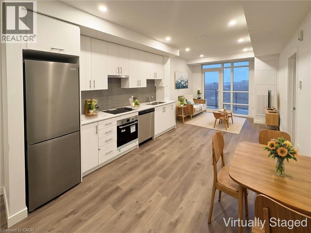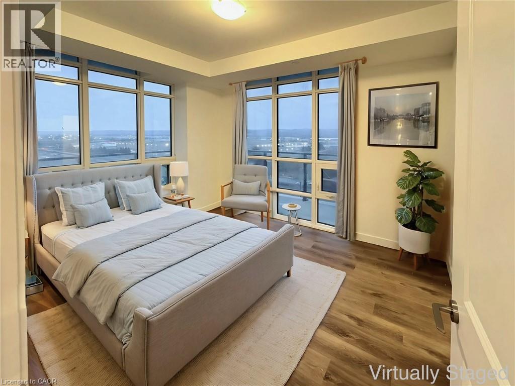 Property Description Welcome to the gorgeous condo living in the heart of Stoney Creek. This brand-new 2-bedroom, 2-bathroom residence offers sweeping lake views and escarpment scenery. Thoughtfully designed for both everyday comfort and entertaining, the unit features 9-foot ceilings, custom finishes, and oversized wrap around windows that fill the space with natural light. Wear-resistant luxury vinyl plank flooring flows through the principal living areas, while ceramic tile finishes the bathrooms and laundry space. The modern kitchen showcases custom cabinetry and surfaces, a stylish subway tile backsplash, stainless steel appliances including a built-in range and cooktop, slim-line hood fan vented to the exterior. The bright living room opens to an impressive 200 sq. ft. solid concrete balcony with modern glass railings, an ideal setting for morning coffee or evening relaxation overlooking the lake. The thoughtfully separated bedrooms provide privacy and flexibility. The primary retreat features a generous walk-in closet and a sleek ensuite with a frameless glass step-in shower. The second bedroom is ideal for guests or a home office, located near the second full bath. In-suite laundry, individually controlled heating and cooling, and smart-home features add everyday convenience. This outstanding building offers a non-combustible structure with superior sound separation, three high-speed elevators, underground parking with keyless fob access, one parking space and locker included, bike storage, and Wi-Fi-enabled common areas. Residents enjoy art-inspired amenities including a stunning 6th-floor terrace with BBQ stations and food prep area, rooftop lounge, club room with chef’s kitchen, media lounge, art studio and gallery space, yoga and wellness area, and pet spa. Ideally located steps to lakeside trails, Confederation Park, shops, GO Transit, and major commuter routes offering the perfect blend of scenic surroundings and urban convenience. (70196176)
