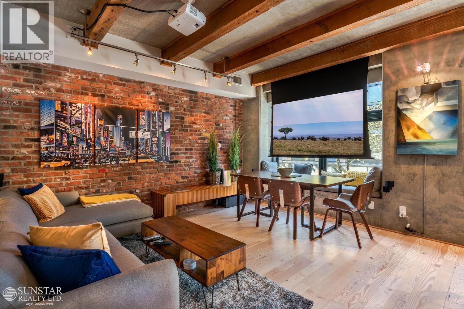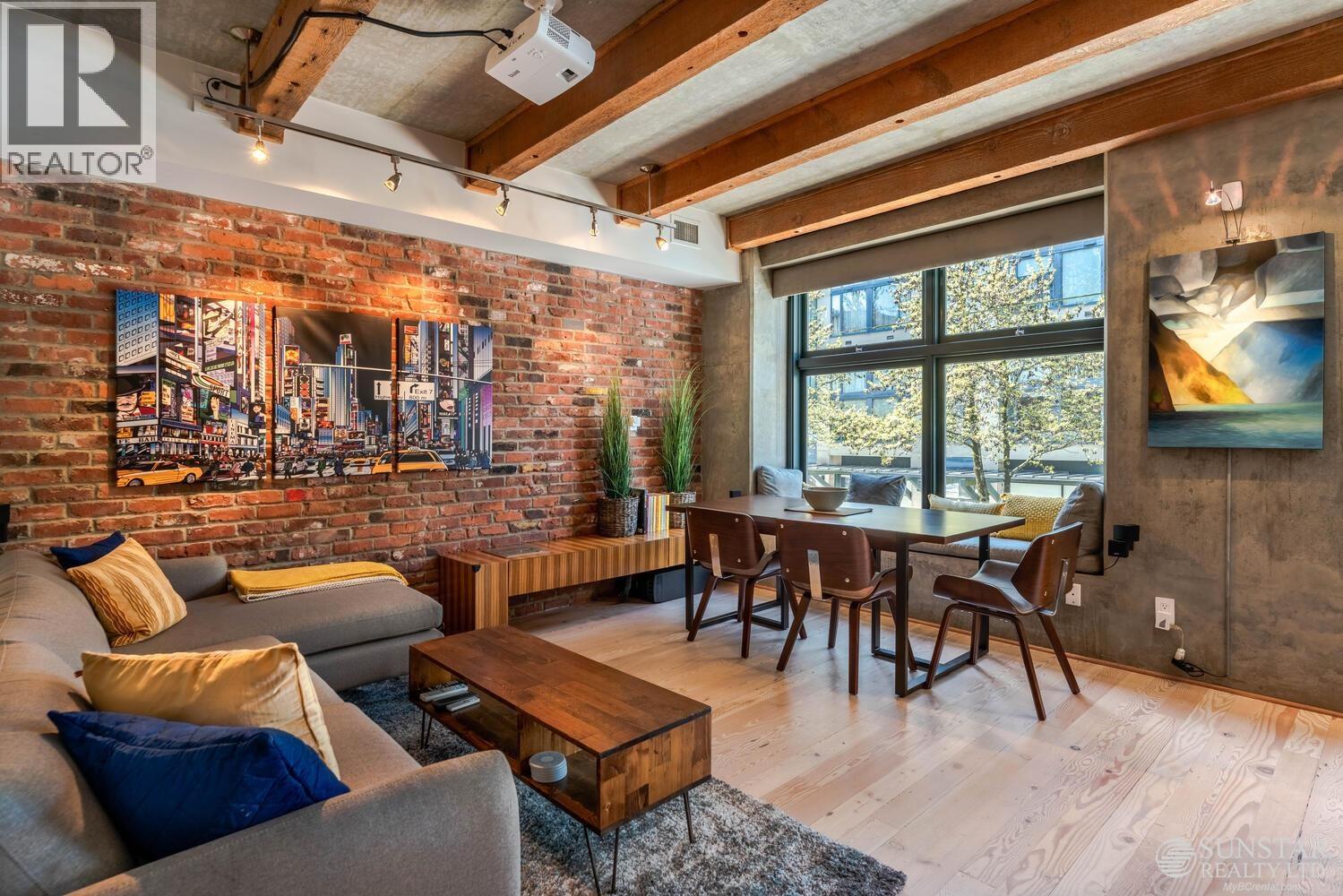 McMaster - Yaletown's Best Heritage Warehouse Loft Conversion. Rare rental opportunity in this Boutique Building with only 15 unique units. This boujee loft features 2 bedrooms or large 1 + Office + 2 bathrooms. Originally constructed in 1910 with many of its "Edwardian Industrial" architectural details restored, with new concrete construction in 2007. Central air conditioning, chic modern decor, and loaded with many original accents: reclaimed fir floors throughout, high ceilings, exposed timber beams, brick, and concrete. Comfortable large L-shaped sofa, all brand new quality furnishings throughout. Parking lift for a second vehicle with an 80 amp custom Tesla EV charger can be available upon request. This is the perfect Yaletown address with the city's finest attributes at your doorstep (32452237)