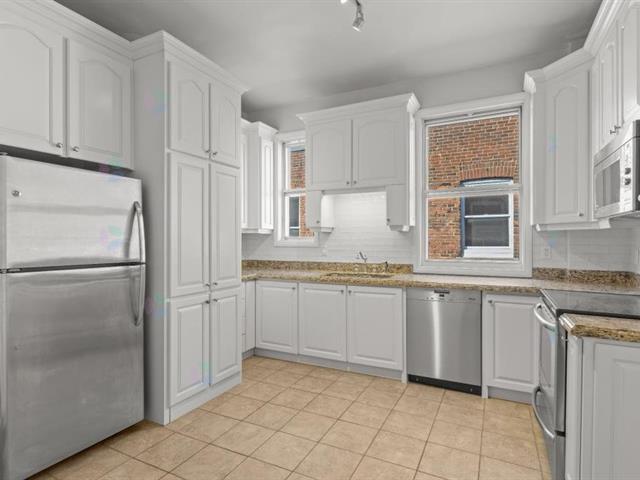 Property Description Top-floor 2-bedroom condo in historic Villa Grosvenor (1903), Westmount. Classic layout with full kitchen, separate dining room, and home office. Freshly painted, rich in original detail. Walk Score 97. Includes appliances, AC, private balcony, one garage parking. Steps to Victoria Village's shops and cafés. (54726030)