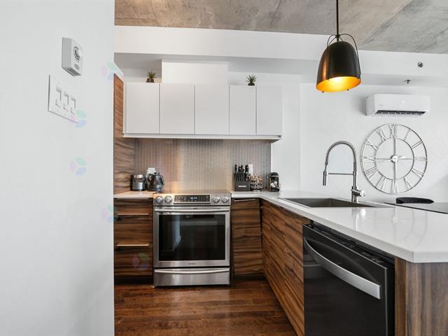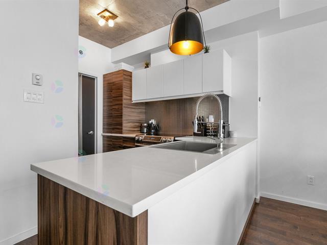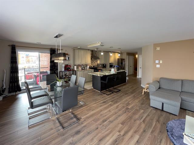 Discover this luxurious condo that impresses from the moment you enter! This meticulously maintained corner unit offers windows on three sides, filling the space with natural light year-round. Located in the sought-after Portes de Londres project in the heart of Quartier DIX30, it features an open-concept layout with 2 bedrooms, a gas fireplace with stone accent wall, a spacious balcony, and 2 parking spaces. Its unique character and prime location make this property truly exceptional. (43203636)