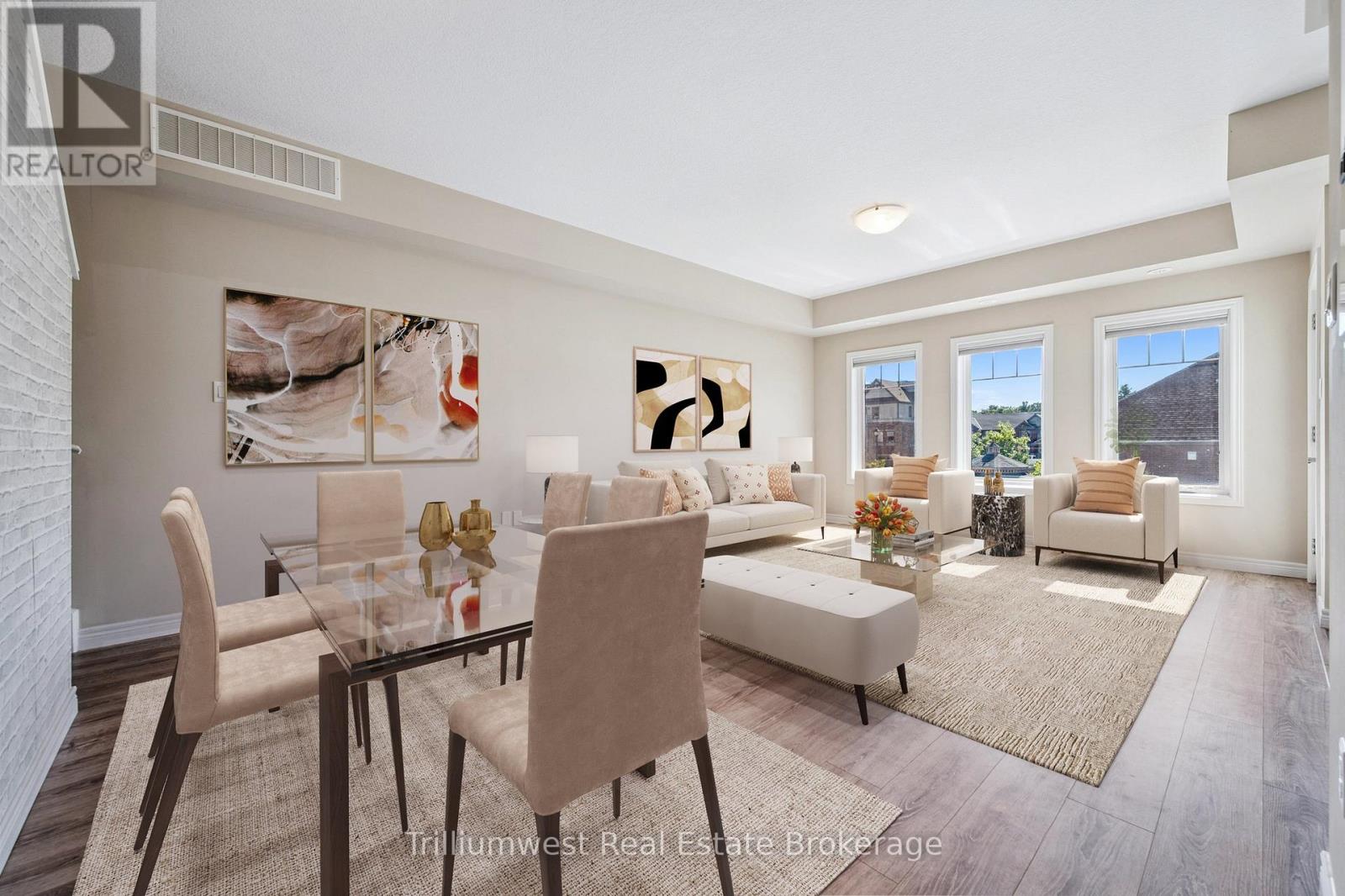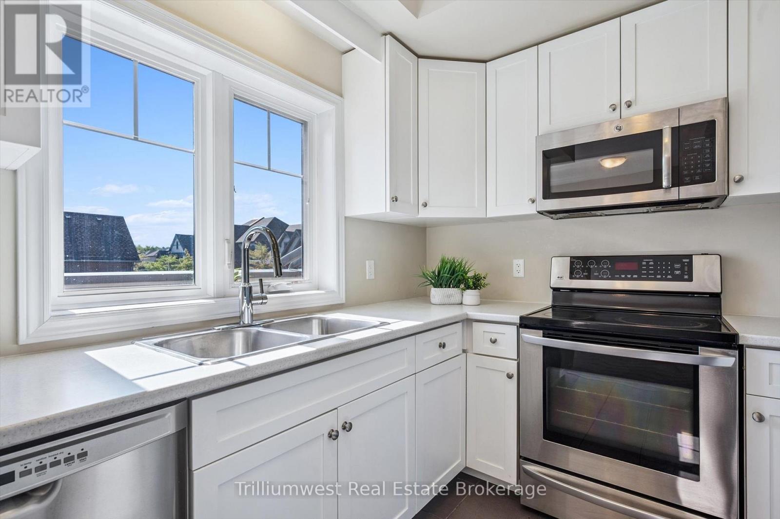Welcome to 13-39 Kay Crescent, a rare find in Guelph's vibrant South End that offers the best of urban living with exceptional convenience. Located just moments from the Pergola Commons, this home provides unparalleled access to a wealth of amenities, including shopping, groceries, entertainment, and dining. Commuters will appreciate the easy access to Highway 401, making this the perfect blend of central location and accessibility. This stacked condo unit stands out with its flexible and generous parking, featuring one driveway spot and a covered garage with inside entry, plus visitor parking nearby-a true luxury for city living. Step inside to a bright and inviting open-concept main living level that is both functional and spacious. The layout is perfect for entertaining, with room for an extended dining table, a comfortable living area, and a well-appointed kitchen that all flow together seamlessly. Large windows bathe the space in natural light and offer picturesque views of the well-maintained common areas, complete with a gazebo, benches, and lush green space. A private balcony off the main living area provides a peaceful retreat for enjoying your morning coffee or evening relaxation. A convenient powder room completes this level. Upstairs, the bright and expansive primary bedroom is a true sanctuary. It features a striking accent wall, a spacious walk-in closet, and enough room for a king-sized bed and all your furniture. The second floor is designed for practicality, offering a good-sized second bedroom, a main bathroom with ample storage, and a dedicated utility room with a washer, dryer, hot water heater. This unit is a standout for its thoughtful design, premium parking, and incredible location. It's not just a home; it's a lifestyle waiting to be enjoyed. (41998408)