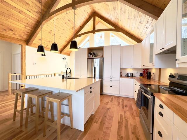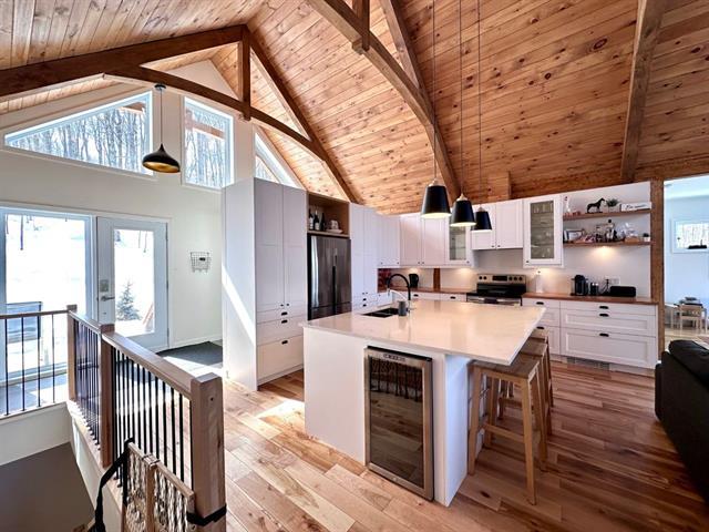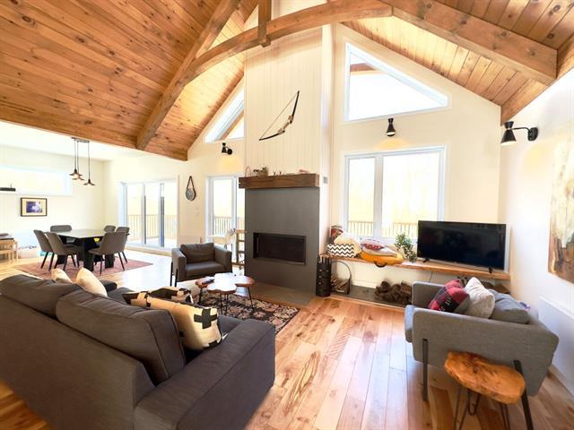 6 month rental from April 15th, 2026. Not available for the 2025-2026 winter season. Spacious and comfortable residence with 5 bedrooms. Fully furnished and equipped. Construction 2020. Open concept, accessory garage (ideal for storing sporting goods). Large family room, wood fireplace. Perfect mix of a haven of peace surrounded by nature, all close to services and shops in the St-Jovite sector. The rent includes internet, hydro, snow removal from the parking lot (snow removal from the steps not included), firewood, lawn maintenance. Pets, smoking, vaping not allowed. (42962983)
