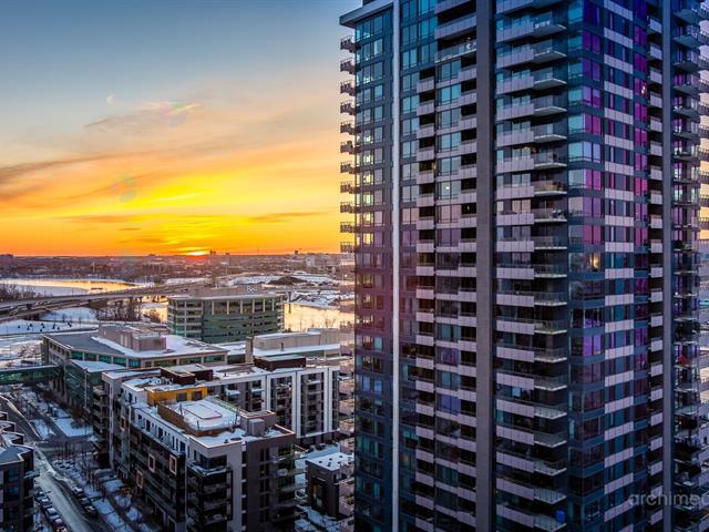 Brand new, sunny condo with one closed (1) bedroom, a spacious bathroom, and a versatile den that can serve as an office or second (2) bedroom. The open-concept living room, kitchen, and dining room offer an airy living space with windows offering a southeast view of Île-des-Soeurs and the St. Lawrence River. The Mille Levert complex features a pool, exercise rooms, and more. Ideally located steps from the island's shopping center, the REM station, and much more--all within walking distance. Available now. (38982088)