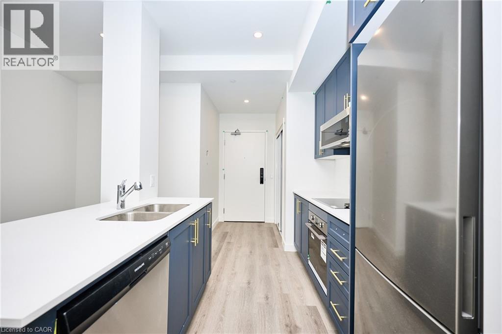 Welcome to this charming one-bedroom, one-bathroom suite, boasting 9-foot ceilings, a modern kitchen equipped with a five-piece appliance package, a sleek glass shower, and attractive vinyl plank flooring throughout. Enjoy the convenience of an in-suite washer and dryer, and step out onto the 80-square-foot balcony for fresh air and relaxation. Here, this suite offers an array of enticing amenities, including a rooftop terrace with barbecue grills, comfortable seating, and breathtaking views of Lake Ontario. You'll also have access to a media room, a spacious party room, a pet grooming spa, an on-site dog park, and secure bicycle storage. Located conveniently near the QEW highway, 1 surface parking and 1 locker included. (70023572)